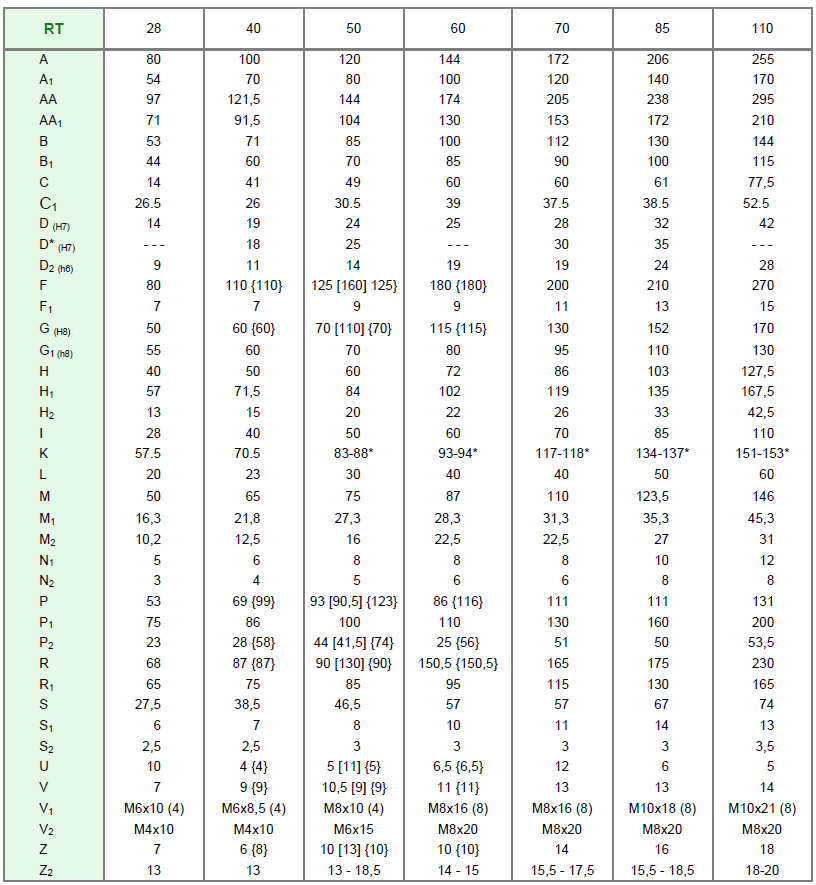 2. 40 – габарит (межосевое расстояние, мм: 28, 40, 50, 60, 70, 85, 110);
